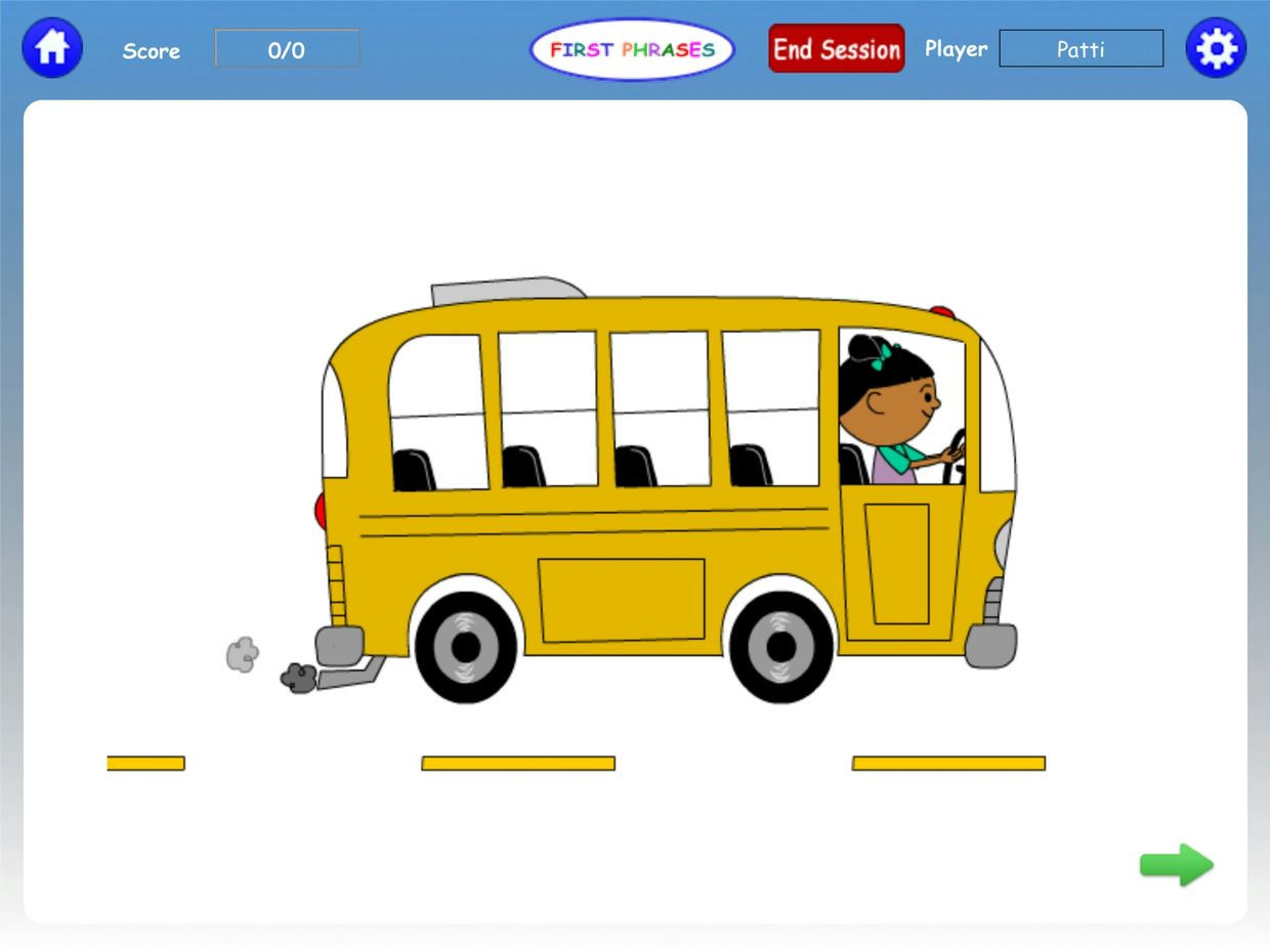 After the child activates the phrase the selected number of times, the character then indicates he/she will perform the desired action. For example, the girl will say, “Ok, I’ll drive the bus!” The animation of that phrase will then automatically pop up so the child can see what a "girl driving the bus” looks like. The animation generally lasts 5-7 seconds.